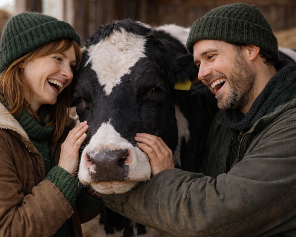 For example, try cuddling a cow. It’s a stress reliever and also releases the cuddle hormone oxytocin, in both humans and cows.