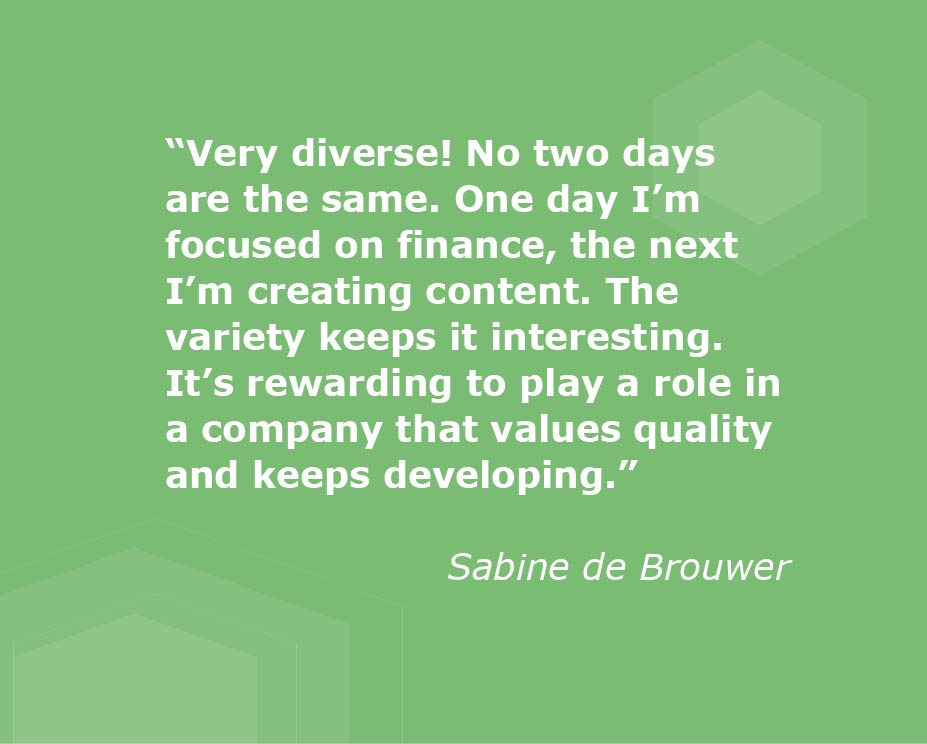 Sabine answers our question as follows: “Working at Genugten Agri is very diverse! No two days are the same. One day I’m focused on finance, the next I’m creating content. The variety keeps it interesting. It’s rewarding to play a role in a company that values quality and keeps developing.”